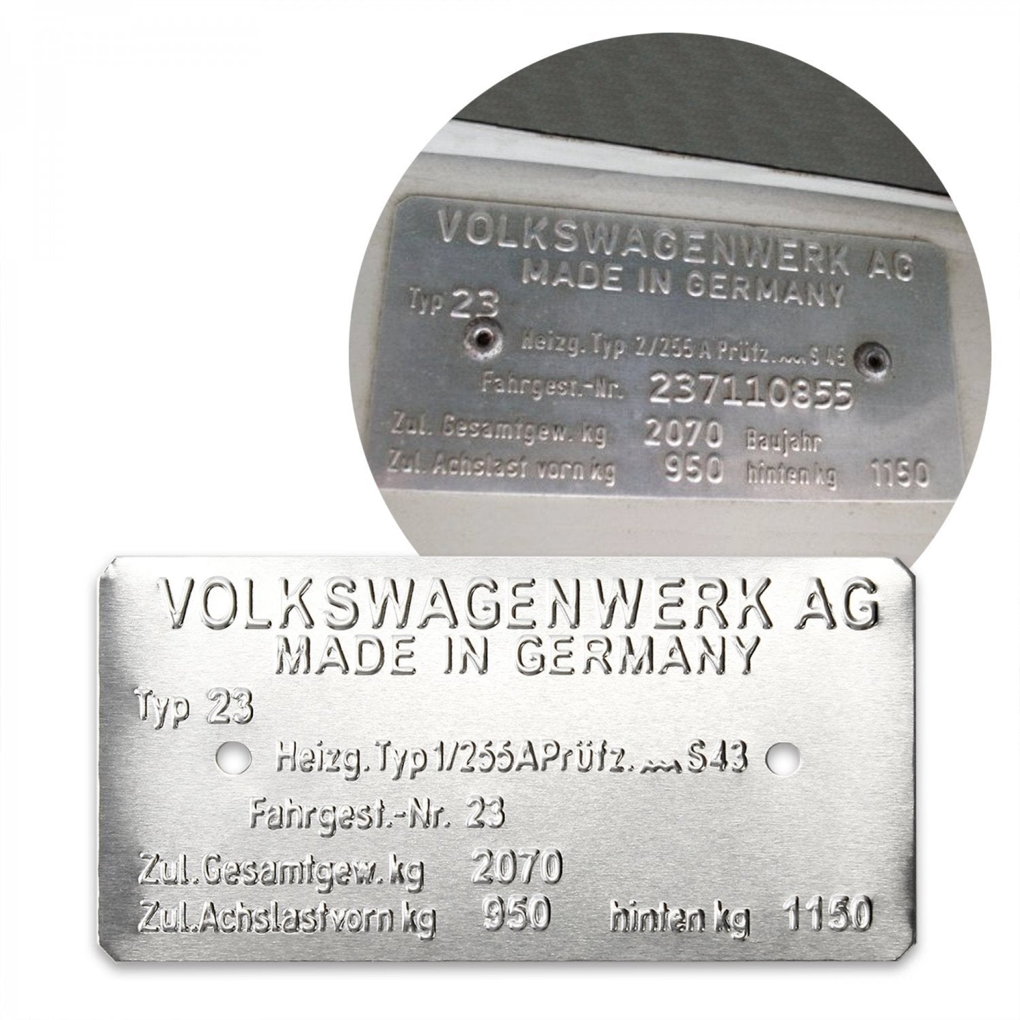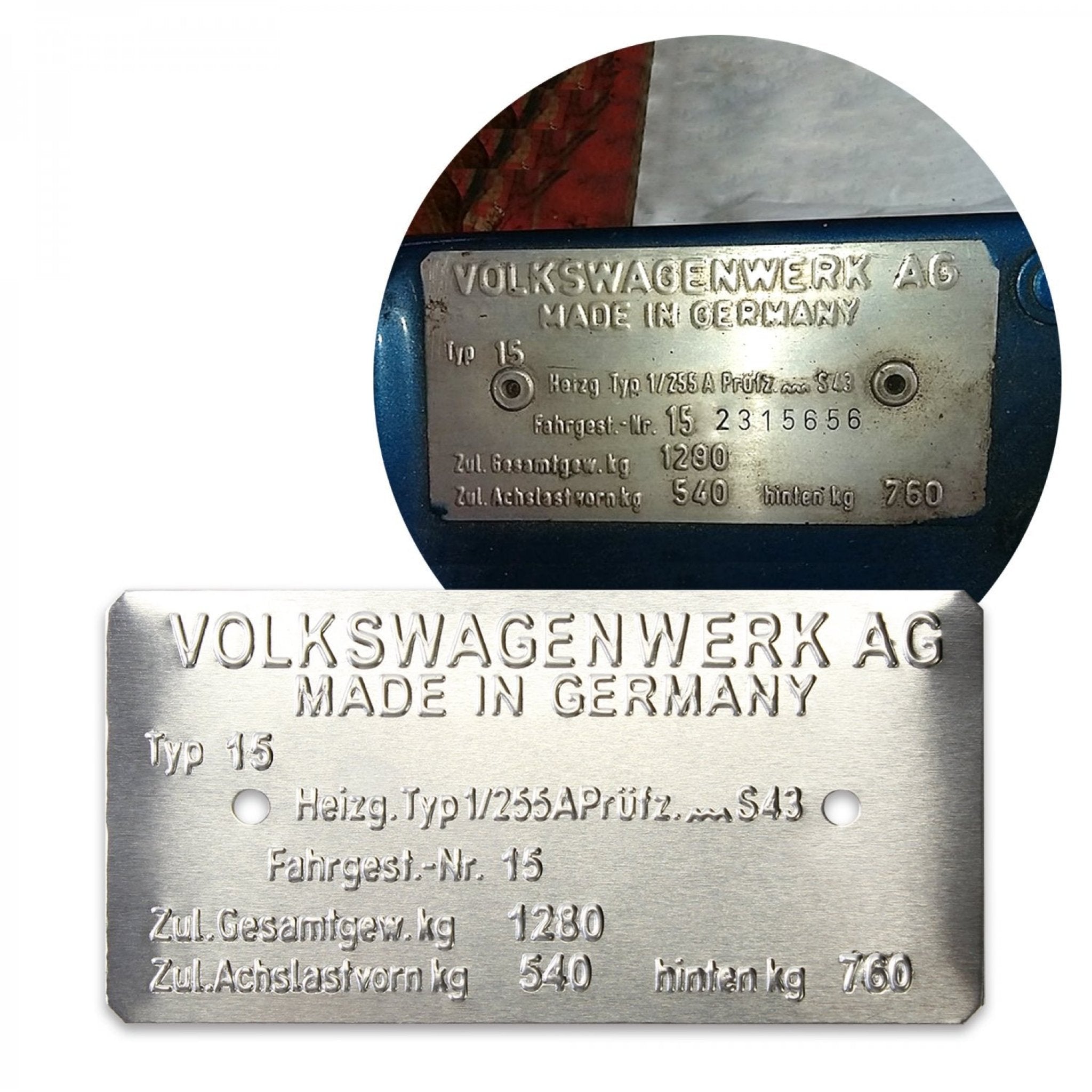Better then the real thing! These high quality blank vintage replacement vehicle identification name plates are super detailed. These are made from correct gauge steal and are unstamped so you can add you correct body code and ID number. Ideal for all Volkswagens and Porsches!